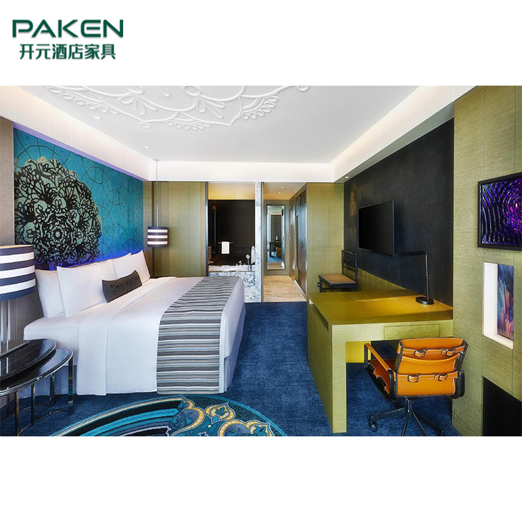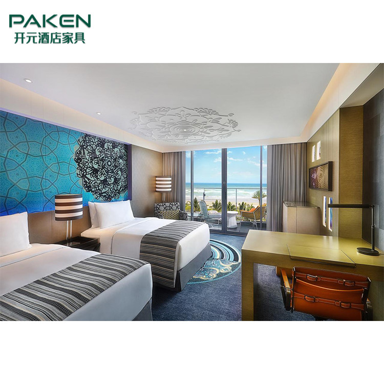 Masif Ahşap Doğal Kaplama Yatak Odası Takımı ile Özelleştirilmiş Modern Otel Mobilyaları